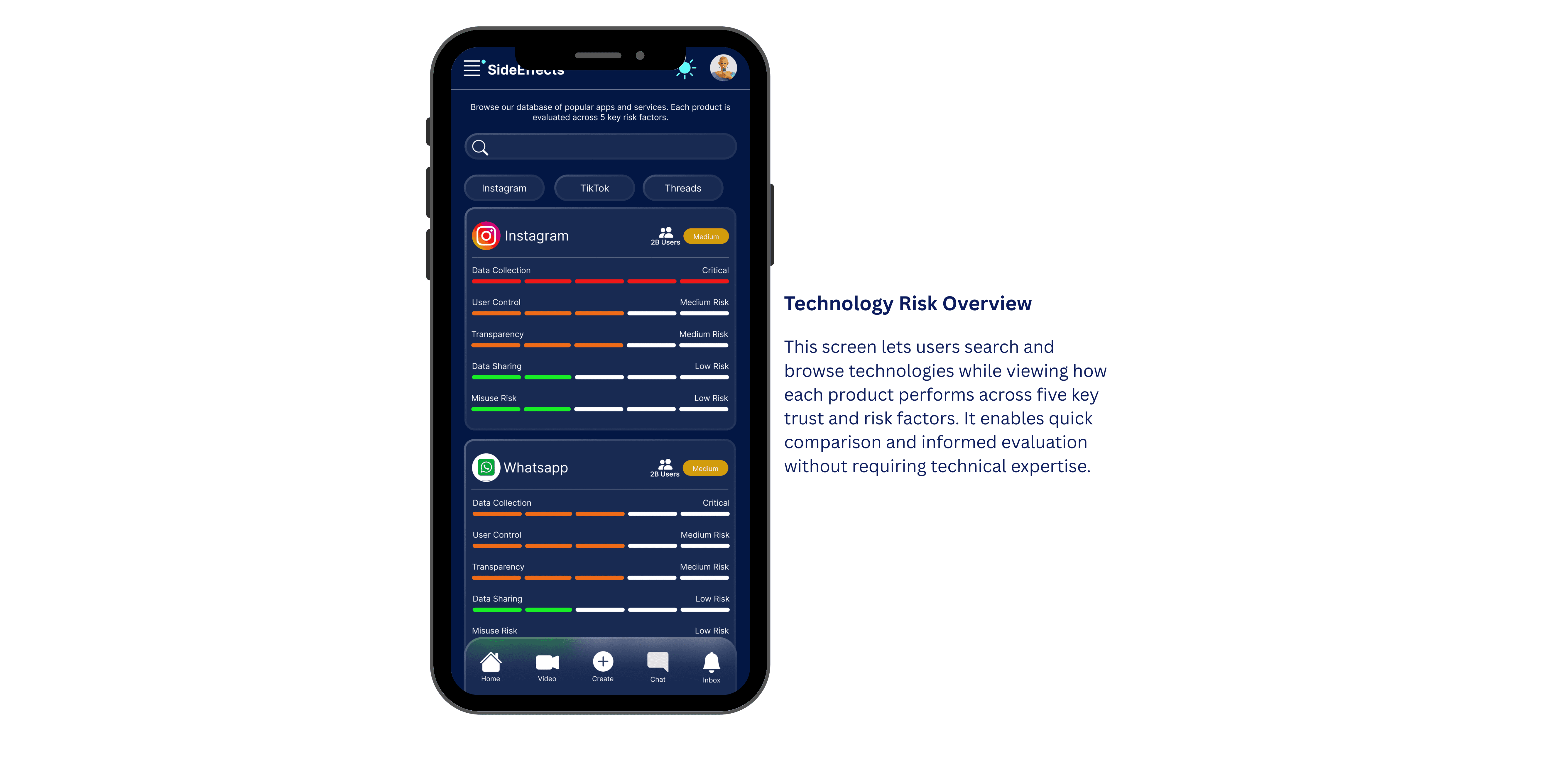 With traffic-light warnings, clear visuals, and alternative recommendations, Side Effects empowers users to see both sides of technology and make informed choices.